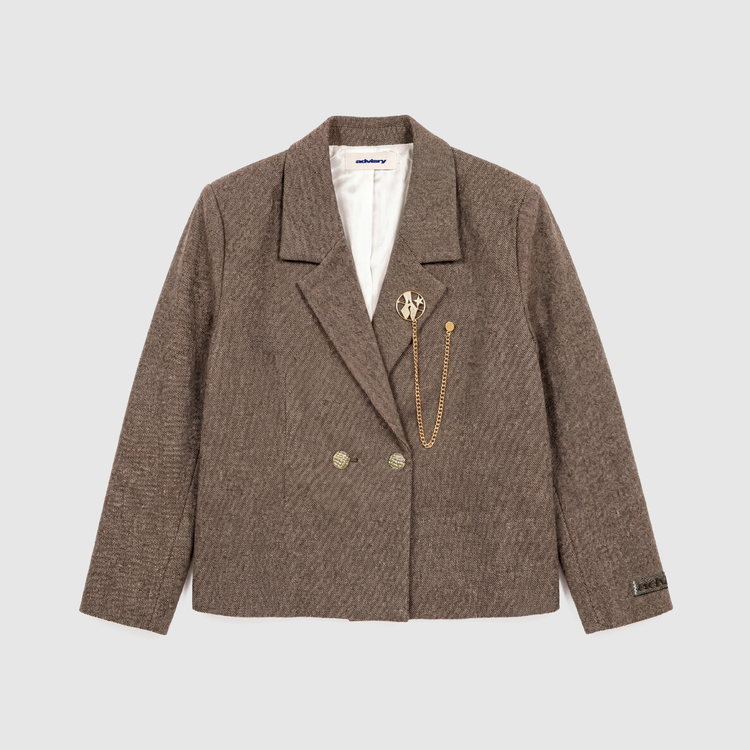 A cornerstone of Advisry’s signature tailoring program, this double-breasted blazer blends timeless structure with modern sensibility. Cut in a wide, boxy silhouette that drapes naturally to the body, it delivers both sharpness and ease in equal measure. Finished with a satin monogram-lined interior, a gold chain logo lapel pin, and our signature sleeve tag, it’s designed to be styled up or pared back—versatile enough to carry you through any occasion with intention and edge. Fits true to size.